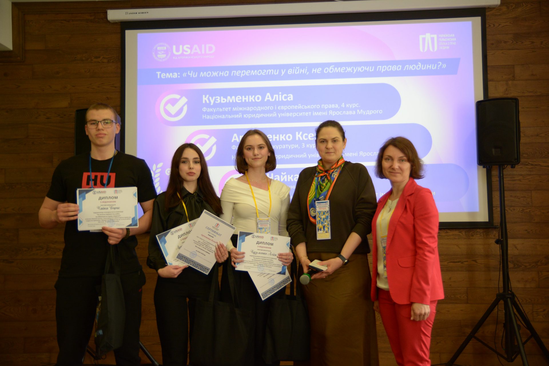 13 квітня відбулося урочисте нагородження переможців і лауреатів конкурсу есе Зимової школи для студентів-правників «Юридична професія під час та після війни». Цю школу Українська Гельсінська спілка з прав людини організувала для молоді, зацікавленої у правозахисній діяльності. 350 студентів та студенток правничих спеціальностей впродовж трьох місяців заглиблювалися у тему міжнародного гуманітарного права.