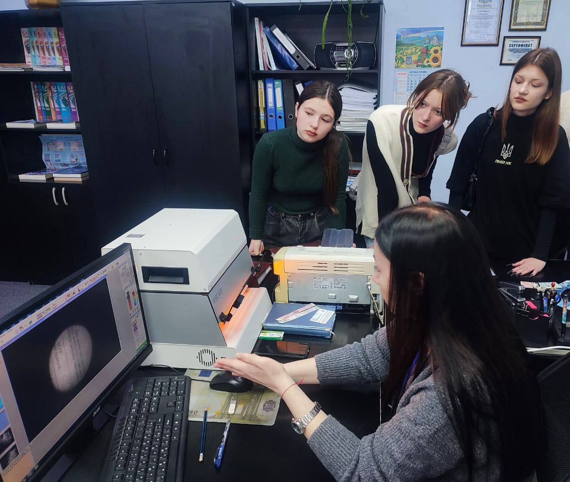 Судові експерти різних відділів криміналістичних видів досліджень розповіли студентам про особливості роботи під час війни, основні виклики та завдання сьогодення. Майбутні слідчі і детективи ненадовго змогли поринути у світ експертиз: зробити дактилоскопію, розпізнати підробки грошових знаків, ознайомитися із боєприпасами та вибуховими речовинами, дослідити документи, сповна відчути як це – працювати експертом-криміналістом, наскільки це відповідальна, нелегка та цікава професія.