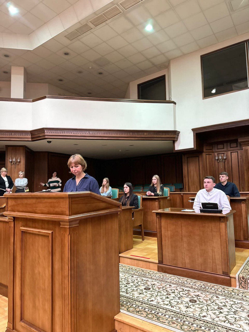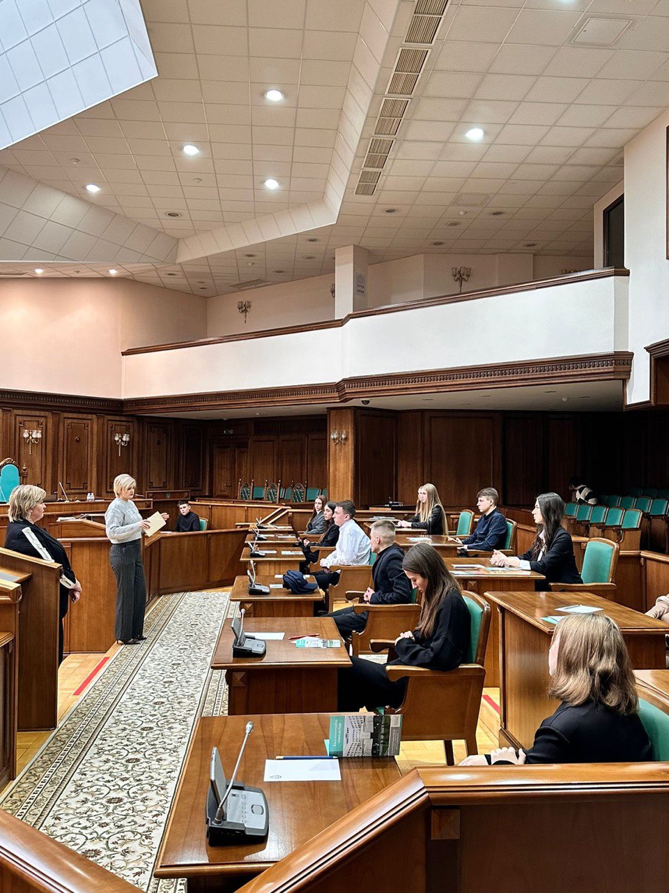 Найцікавішим та найбажанішим став візит до Зали засідань Великої палати Конституційного Суду України, де студенти прослухали коротку лекцію за темою: «Конституційна скарга: субʼєкти, обʼєкти, порядок подання», а також пройшли експрес-тестування на знання Конституції Украіни, нормативно-правої бази про КСУ, та історію створення суду.
