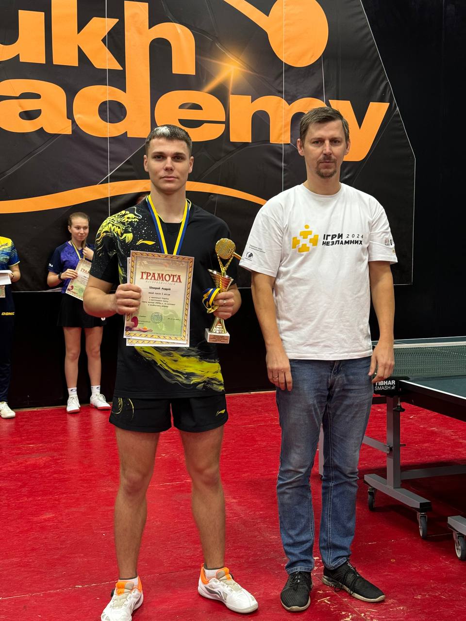 Сенсаційно завершились змагання на Чемпіонаті України серед чоловіків в особистому розряді. У фіналі студент нашого Університету кандидат у майстри спорту України, Андрій Шамрай обіграв майстра спорту України з настільного тенісу, першого номеру за рейтингом Вадима Грибана, з рахунком 3-1. А у півфіналі Андрій з рахунком 3-2 обіграв майстра спорту України, Вадима Солтиса!