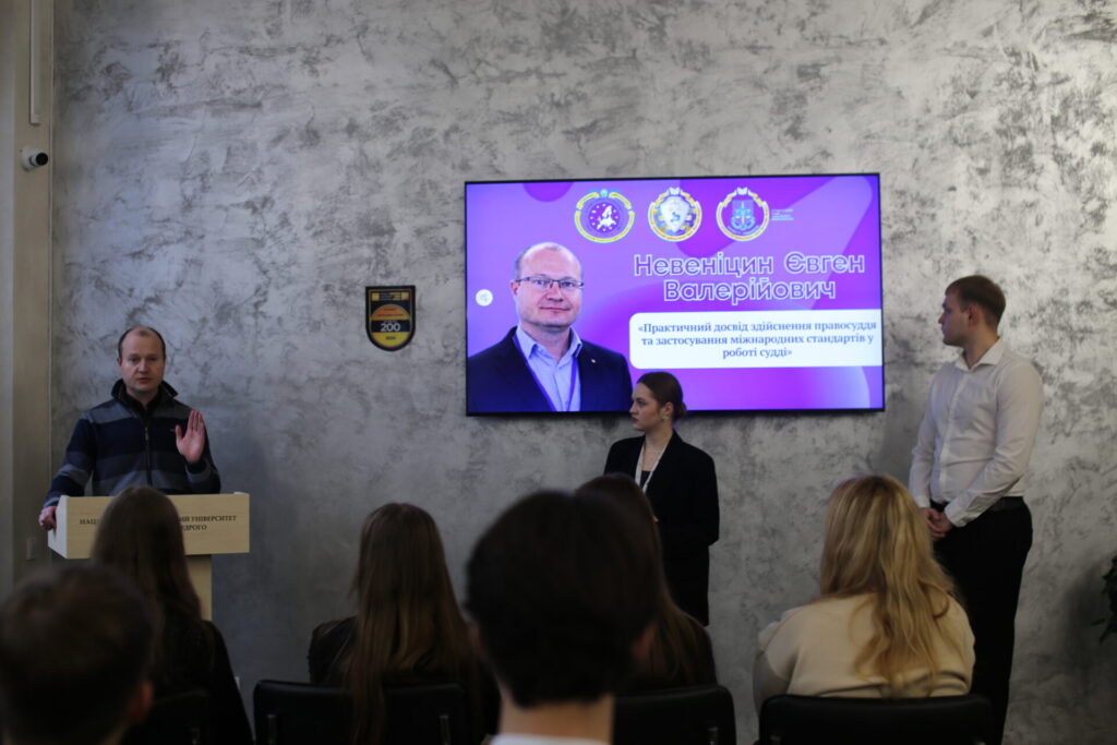 🔷 Факультет прокуратури та факультет міжнародного та європейського права висловлюють подяку Євгену Невеніцину, Катерині Мирось та Микиті Дальоці за приділений час, змістовні виступи, відкритість до дискусій та готовність ділитися унікальним професійним досвідом зі студентством. Окрема вдячність Збройним Силам України за можливість навчатися, розвиватися та організовувати спільні освітні ініціативи навіть у складних умовах сьогодення!