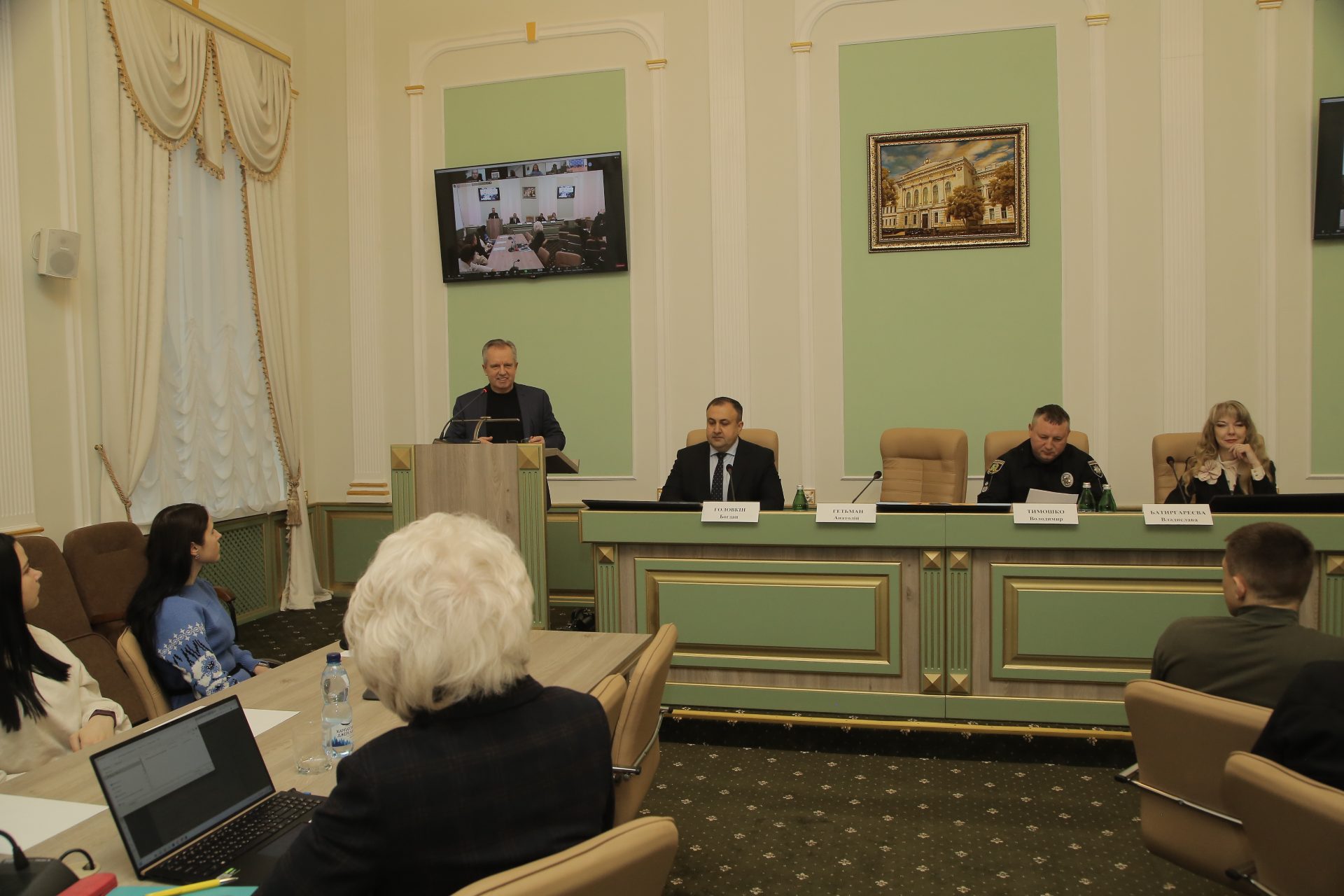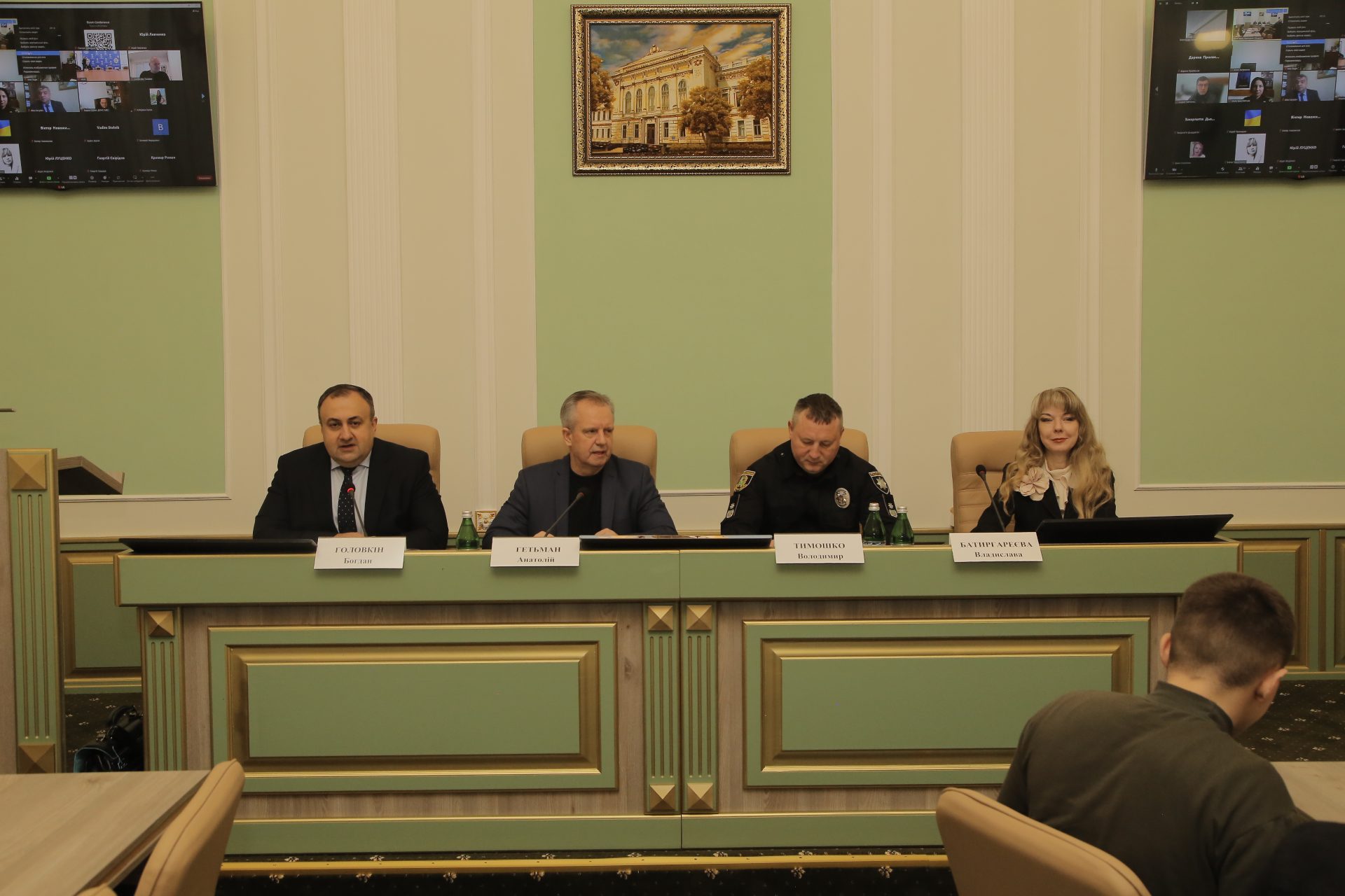 З вітальним словом до учасників конференції звернувся Ректор Університету Анатолій Гетьман, який зазначив, що збройна агресія рф проти України докорінно змінила безпекове середовище, породила нові виклики і загрози для людей, територіальних громад, критичної інфраструктури, державного управління, правопорядку. Під час війни вкрай складно захистити основоположні права і свободи людини, підтримувати стале функціонування економіки, державної і муніципальної інфраструктури, системи освіти, створити необхідні умови для задоволення первинних потреб та інтересів різних категорій населення, захисту кіберпростору, організації територіальної оборони. Тільки консолідація зусиль усіх гілок державної влади, органів місцевого самоврядування, правоохоронної системи дозволяють перемагати на полі бою і захищати мирне населення від терористичних, воєнних, техногенних, кримінальних загроз.