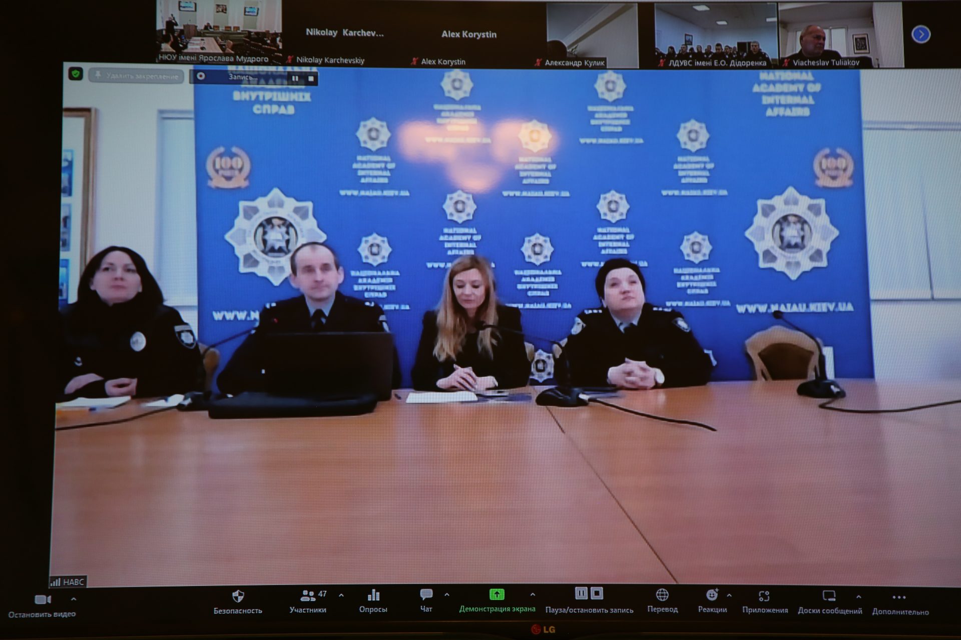 Учасників конференції привітала Директорка Департаменту освіти, науки та спорту Міністерства внутрішніх справ України Інна Ящук, яка зазначила про надзвичайну актуальність теми конференції, подякувала організаторам, процитувала фрагменти виступу Володимира Зеленського в Конгресі США, зауважила про успішну реалізацію Міністерством внутрішніх справ України в рамках загальнонаціонального проекту «Безпечна Україна» низки ініціатив із забезпечення публічного порядку і безпеки.