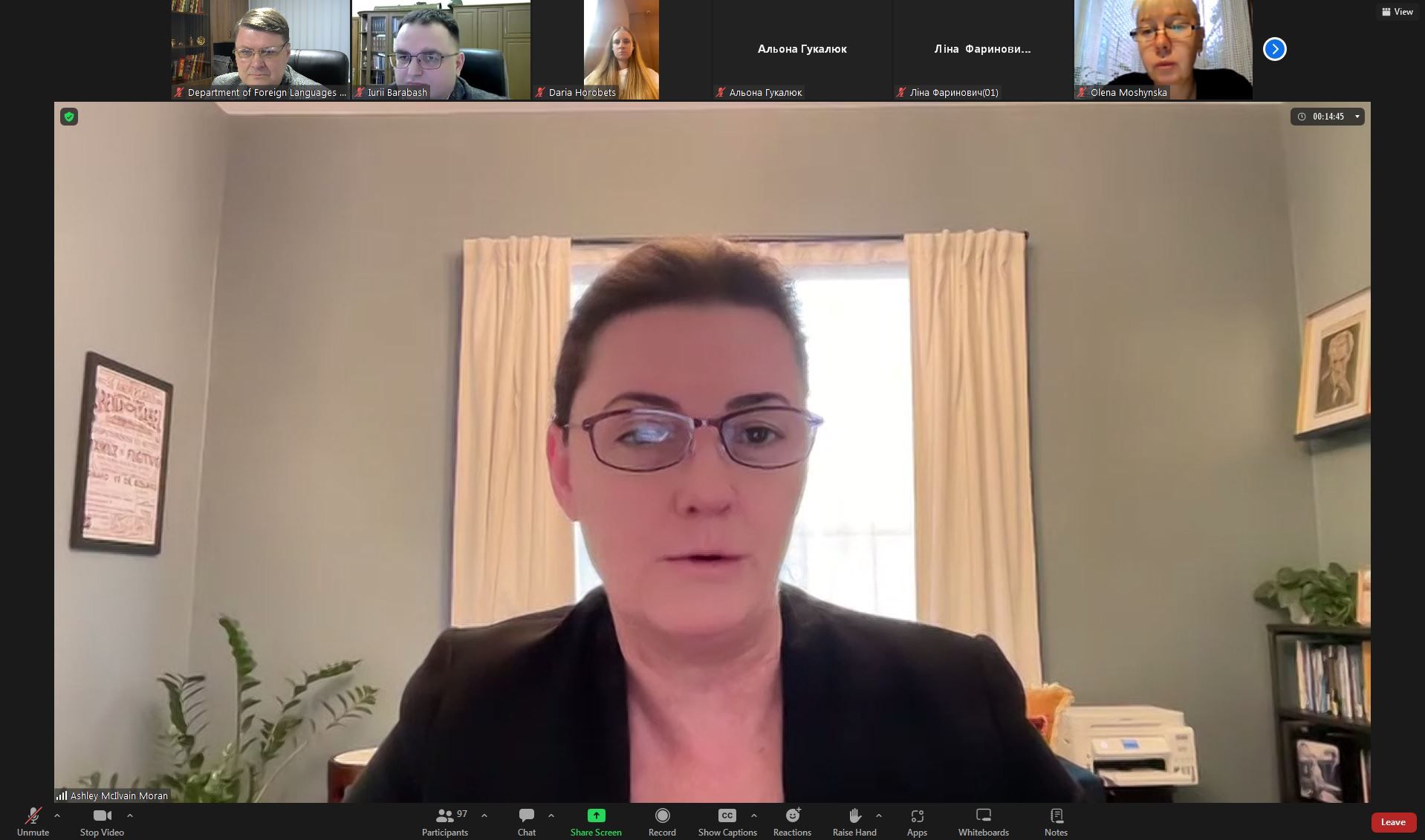 Кафедра іноземних мов університету та всі студенти висловлюють щиру подяку професору Чарльзу Уайтхеду та професору Ешлі Макілвейн Моран за такі інформативні, актуальні та цікаві зустрічі і сподіваються на подальшу співпрацю.