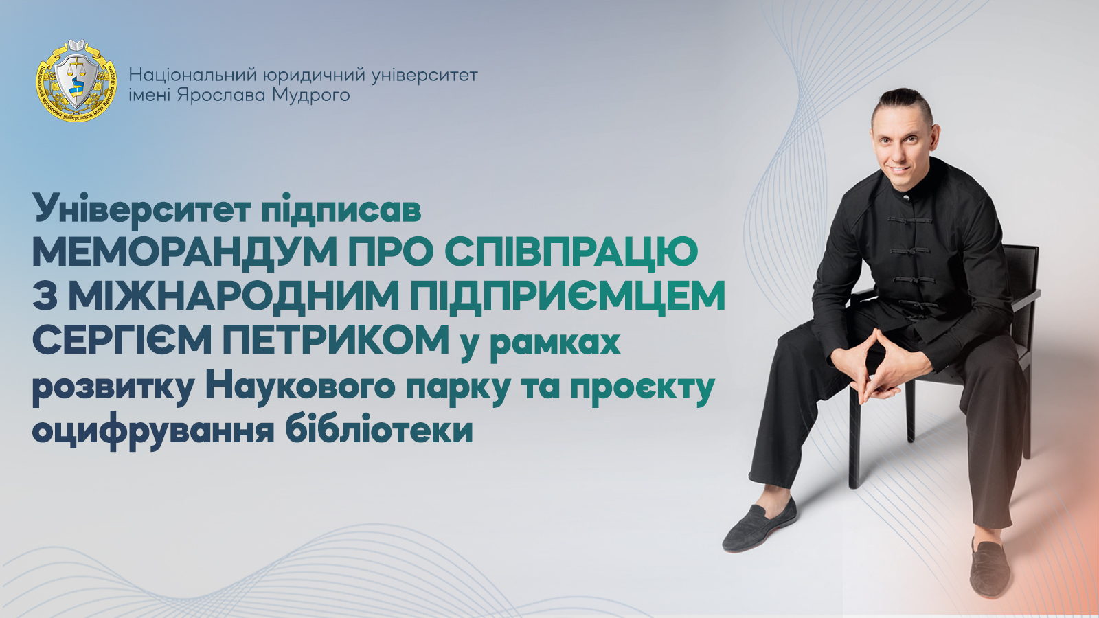 Національний юридичний університет імені Ярослава Мудрого підписав Меморандум про співпрацю з Сергієм Петриком — українським підприємцем з діаспори, організатором понад 70 міжнародних конференцій та заходу, який зафіксовано у Книзі рекордів Гіннесса (121 348 одночасних глядачів трансляції на YouTube, верифіковано Guinness World Records).