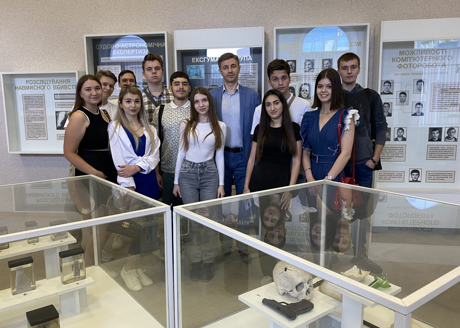 ▪️ екскурсія музеєм кафедри криміналістики з метою поглиблення теоретичних знань у сфері застосування науково-технічних засобів криміналістичної техніки, їх історія розвиту та напрями удосконалення, дослідження можливостей криміналістичних експертиз, особливості застосування техніко-криміналістичних засобів профілактики кримінальних правопорушень;