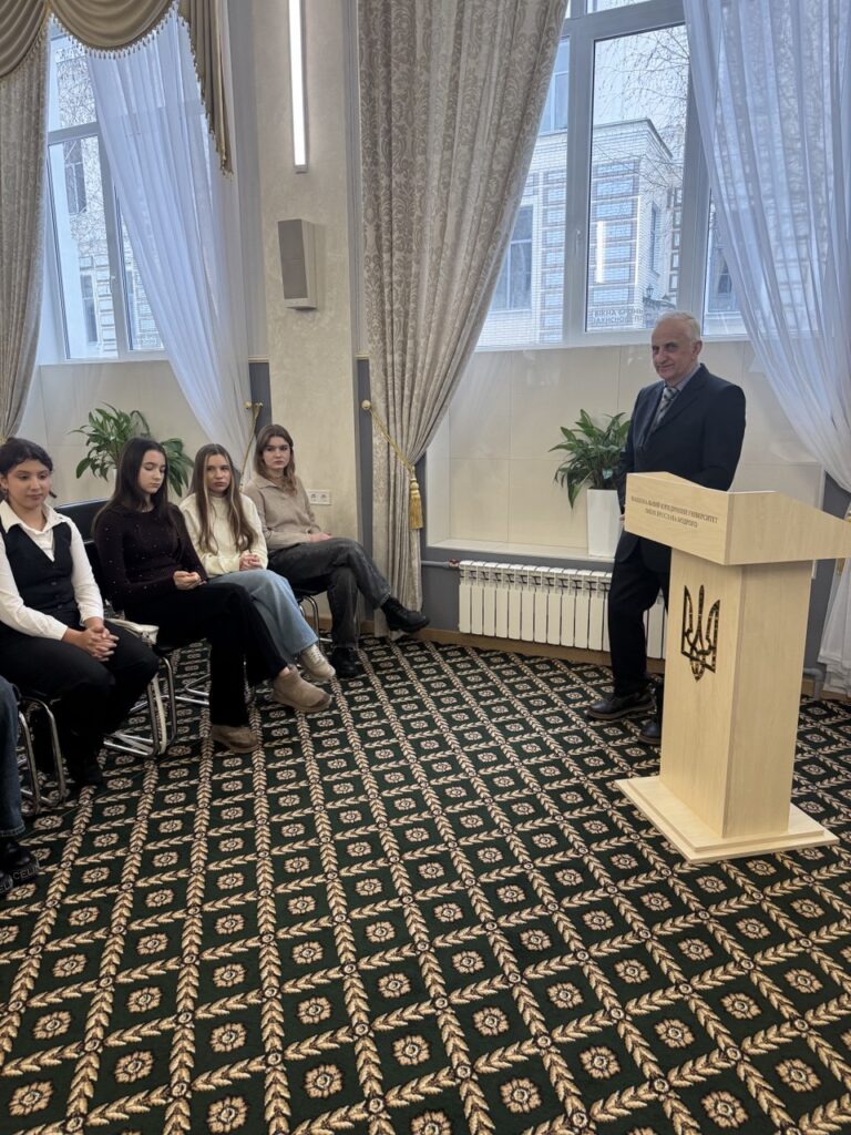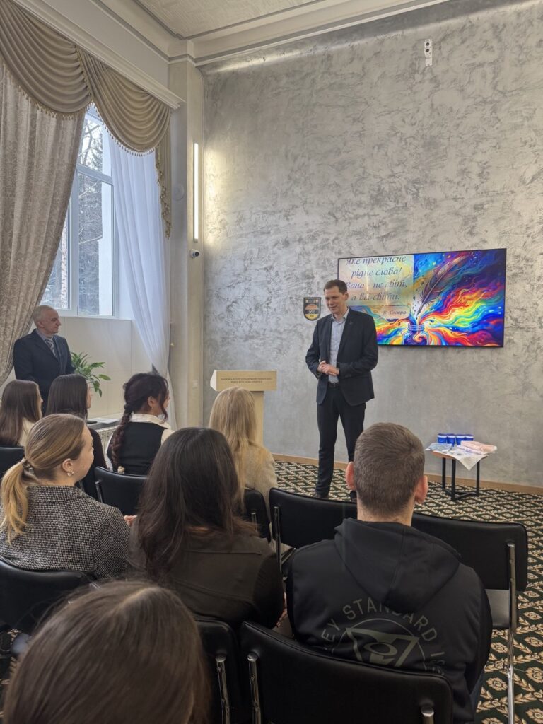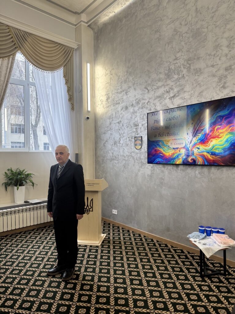 З вітальним словом до всіх учасників звернувся проректор з навчально-виховної роботи та соціального розвитку Олексій Нестерович, який наголосив на значущості рідної мови для збереження національної ідентичності, зміцнення суверенітету України, основ правової держави та утвердження верховенства права. Збройні Сили України, відважні воїни, уже чотири роки дають відсіч повномасштабній російській агресії, віддають найдорожче – життя, щоб ми мали змогу здобувати освіту, радіти кожному новому прийдешньому дню, відчувати себе вільними, нескореними, незламними.