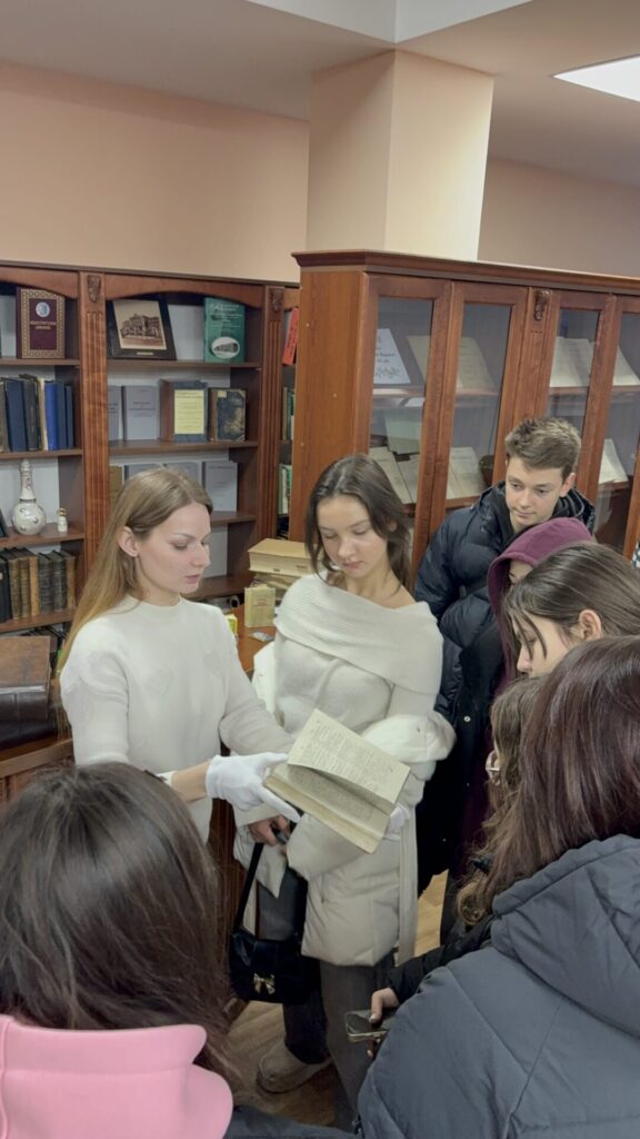 🔷 У межах візиту школярі відвідали навчально-бібліотечний корпус — сучасний простір, у якому гармонійно поєднуються інноваційні технології та багаторічні академічні традиції. Гості ознайомилися з читальними залами, особливостями освітнього середовища, побували в картинній галереї та у відділі рідкісних книг, що зберігає унікальну культурну й наукову спадщину Університету.