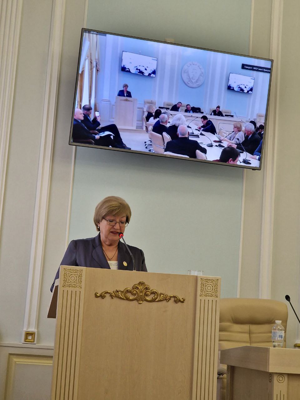 Анатолій Гетьман звернув увагу присутніх на те, що, попри повномасштабне вторгнення російських військ в Україну й безпосереднє розміщення Університету в районі проведення бойових дій, організація навчального процесу була адаптована до нових реалій. Крім того, створено додаткові електронні ресурси для самостійної роботи і проведення системного контролю знань студентів. Ректор надав характеристику професорсько-викладацького складу вишу, зосередився на кадрових змінах, що відбулися упродовж цього нелегкого року, окремо зупинився на якості підготовки фахівців, підготовці й атестації наукових кадрів – аспірантів і докторантів.