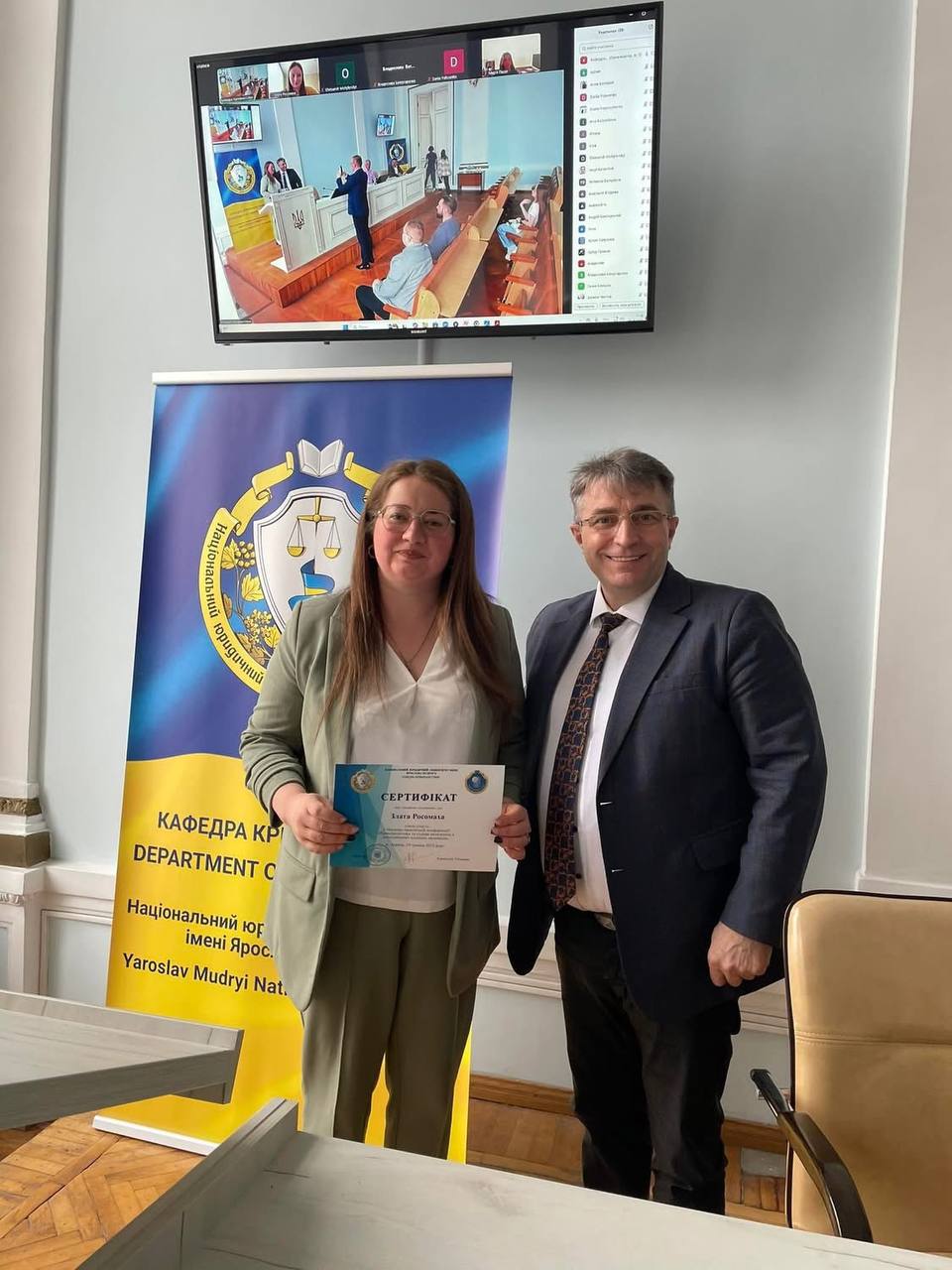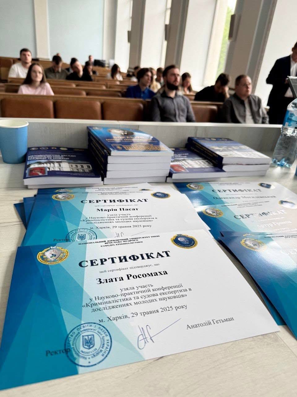 Завідувач кафедри криміналістики Віктор Шевчук вручив кожному учаснику Сертифікати науково-практичної конференції. У своїй промові він висловив щиру вдячність Силам оборони України, завдяки яким маємо змогу навчати та навчатися навіть у складних умовах. Також подякував усім учасникам за активну участь, зацікавленість у науці та небайдужість до розвитку криміналістичної науки. Віктор Шевчук наголосив на важливості підтримки ініціатив молодих науковців і побажав подальших звершень у дослідницькій та професійній діяльності.