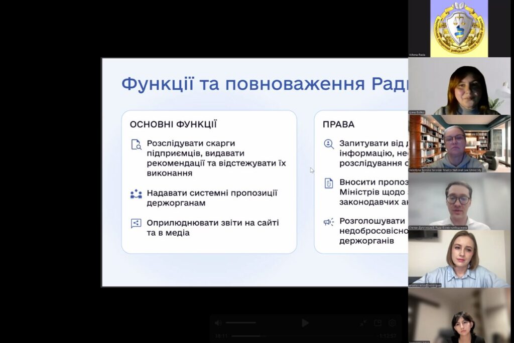 18 листопада 2025 року відбулася зустріч представників Ради бізнес-омбудсмена Анастасії Туз і Степана Дуплінського зі студентами Національного юридичного університету імені Ярослава Мудрого.