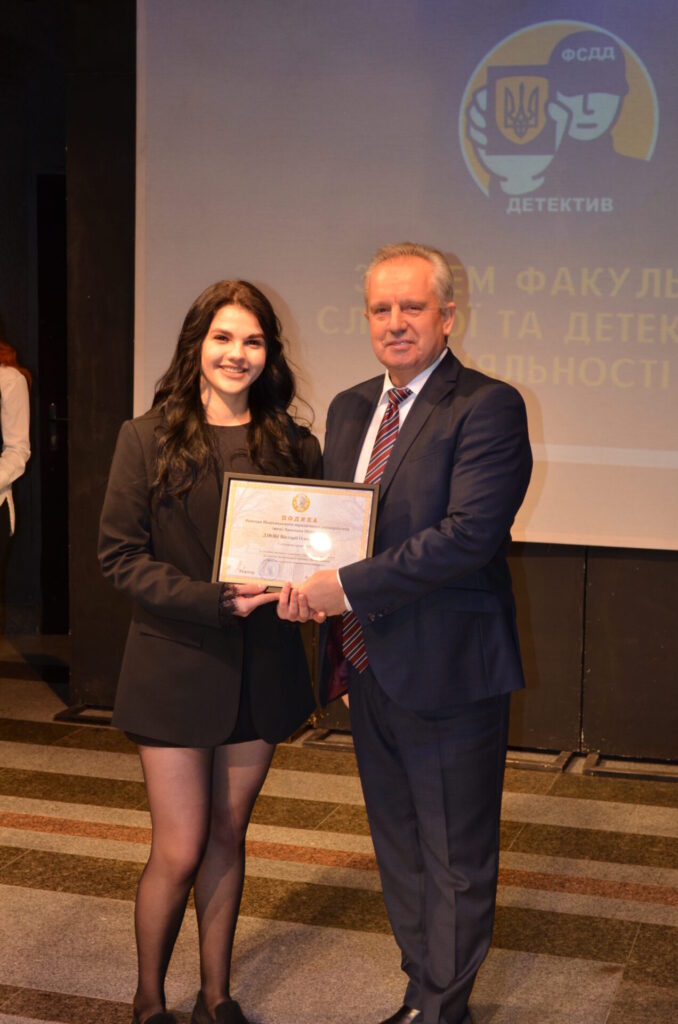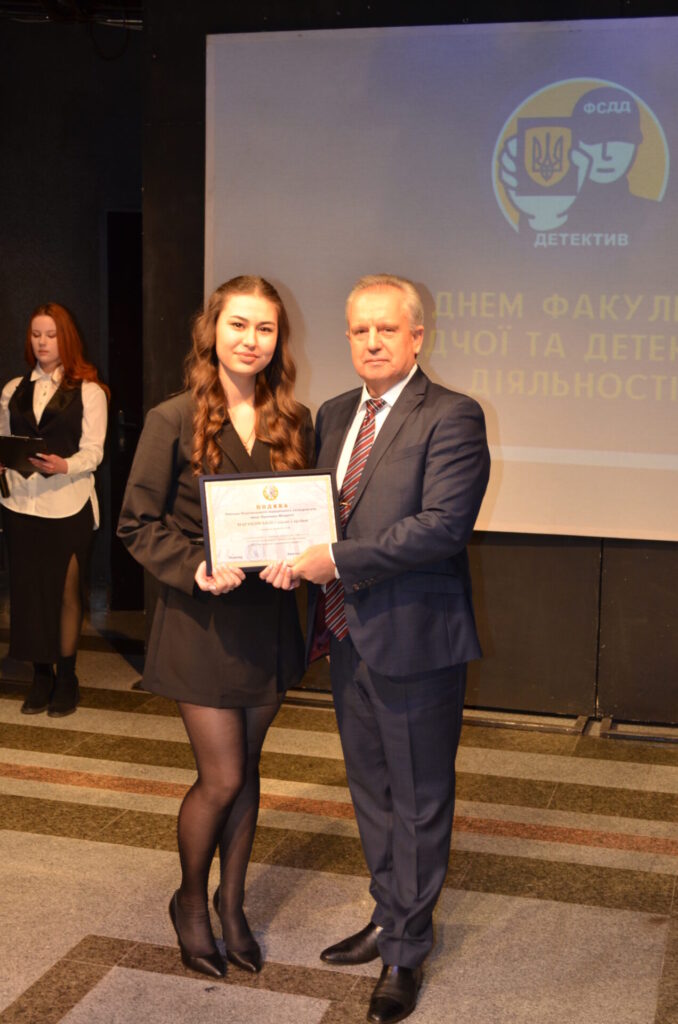 Урочиста частина заходу включала привітання здобувачів вищої освіти  ректором Університету Анатолієм Гетьманом, а також вручення почесних грамот і подяк студентам факультету за високі досягнення в навчанні. У вітальній промові ректор Університету наголосив, що факультет слідчої та детективної діяльності створений шляхом реорганізації Слідчо-криміналістичного інституту, що функціонував у складі нашого ЗВО з 1974 р. Відтак, факультет має давню історію становлення й розвитку та славетні традиції. У складних умовах воєнного стану факультет продовжує відповідально та послідовно виконувати свою важливу місію — готувати нове покоління детективів, слідчих, оперативних працівників, аналітиків, експертів-криміналістів, а також фахівців у сфері запобігання та протидії корупції.