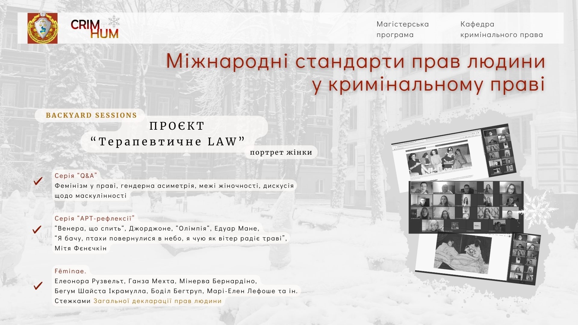 Відкрито BACKYARD SESSIONS на платформі курсу для магістрів «Міжнародні стандарти прав людини у кримінальному праві» (проєкт CRIMHUM Erasmus+)