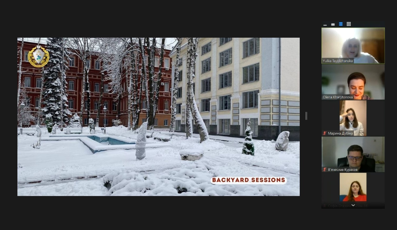 У затишному дворику головного корпусу Університету, поки що лише віртуально, рухались засніженими стежками та захопливо споглядали за красою зимового вбрання улюбленого університетського дворика учасниці/ки зустрічі.
