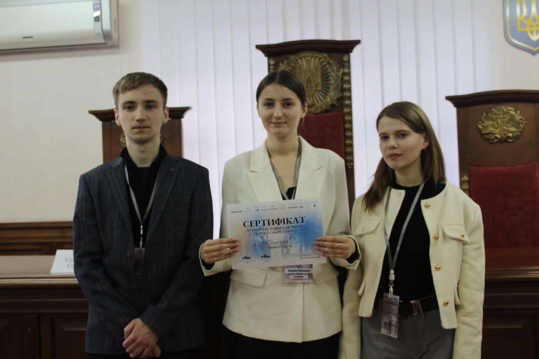 під керівництвом тренерки – доцентки кафедри трудового права Красюк Тетяни здобули 1 місце. Продемонстрований високий рівень підготовки та вміння впевнено відстоювати свою юридично обґрунтовану точку зору є переконливим підтвердженням високої якості освіти в нашому Університеті.