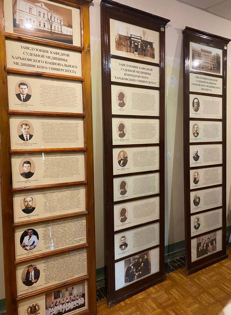 Під час зустрічі нам вдалося отримати ще більше цікавої інформації про життя та наукову діяльність видатних вчених які очолювали та працювали на кафедрі судової медицини, зокрема заслуженого професора М.С. Бокаріуса та його сина професора М.М. Бокаріуса. З 1910 по 1931 роки кафедру очолював Микола Сергійович, видатний вітчизняний вчений та педагог, організатор державної судово-медичної служби, фундатор криміналістичного напрямку в судовій медицині. Він пройшов шлях від помічника прозектора (1987 р.) до завідуючого кафедри (1910 р.), у 1913 р. за його ініціативою був збудований окремий корпус, який згодом одержав статус Інституту судової медицини Імператорського Харківського університету, створив перші вітчизняні ґрунтовні підручники, посібники та наукові журнали із судової медицині, став першим керівником судово-медичної служби України (1920 р.), ініціював створення в Харкові НДІ судових експертиз (1923 р.), провів у Харкові І Всеукраїнський з’їзд судових медиків (1925 р.), йому одному з перших серед професорів-медиків України присвоєно звання «Заслужений професор УРСР» (1925 р.).
