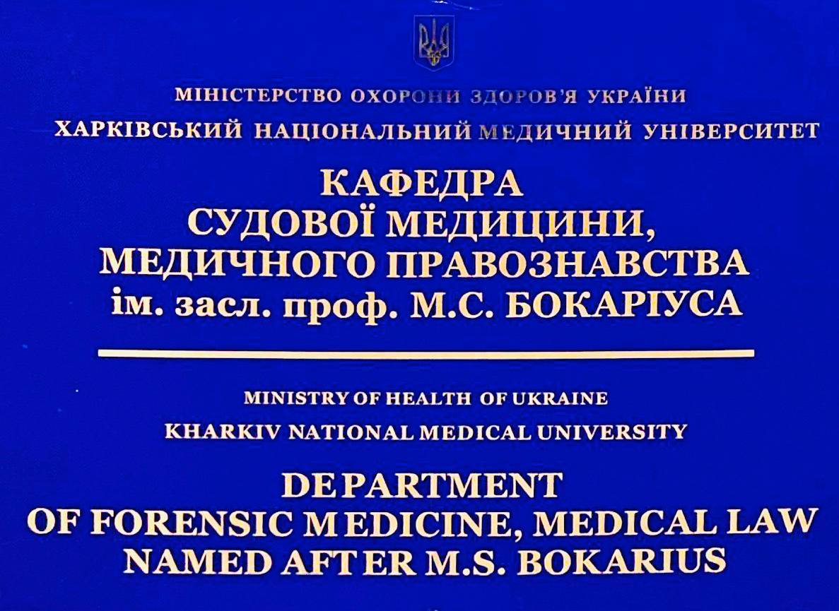 Сьогодні кафедра судової медицини, медичного правознавства є однією з найстаріших серед кафедр Харківського національного медичного університету – заснована в 1804 р. За вагомий внесок кафедри в педагогічну, методичну, наукову та виховну роботу наказом ректора університету № 229 від 01.08.2016 року кафедрі присвоєно почесне ім’я Заслуженого професора М.С. Бокаріуса, а в 2009 році лекційній аудиторії кафедри – почесне ім’я проф. Ф.О. Патенка.