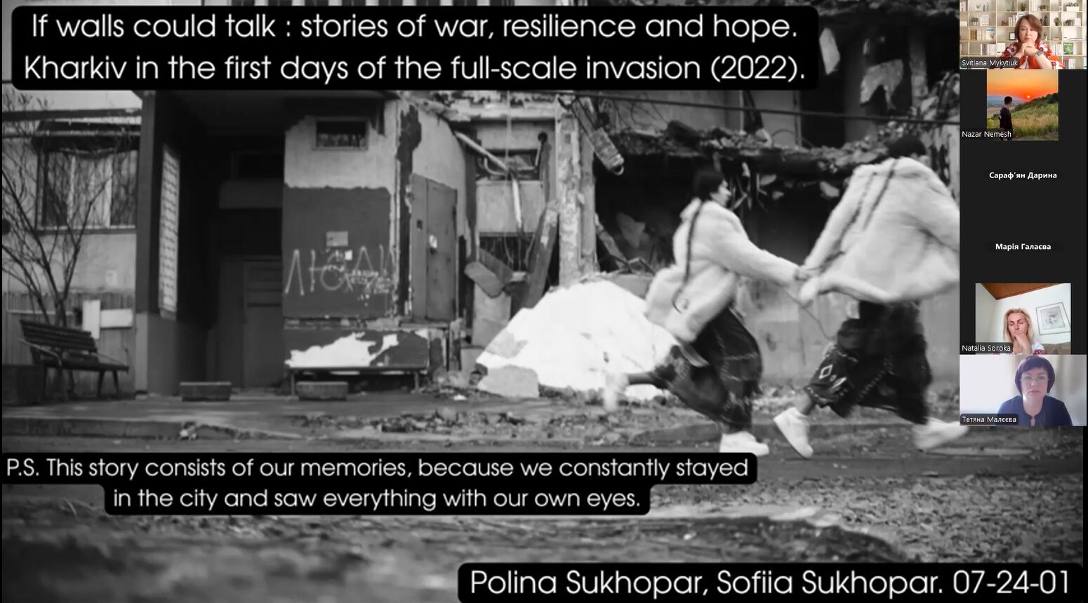 Журі було вкрай складно обрати найкращі роботи, адже кожна з них — це окрема історія боротьби, надії та гідності. У результаті було відібрано 10 найкращих проєктів: “Student Life During the War” Марії Бережнаої, Ельвіри Аскерової, Дарини Сафарян, Лілії Мірошниченко (факультет юстиції, 04-24-06), “If the Walls of My House Could Talk” Аріни Хижняк (факультет прокуратури, 01-24-12), “When the Walls Fall Silent” Марини Фокіної (факультет прокуратури, 01-24-12), “Kharkiv in the First Days of the Full-Scale Invasion” Поліни та Софії Сухопар (факультет міжнародного та європейського права, 07-24-01), “If Walls Could Talk” Анастасії Калініченко (факультет юстиції, 04-24-01), Олександри Головченко, Дарини Погорєлової, Ярослава Ходецького (факультет міжнародного та європейського права, 07 мп-23-02), “Occupied Rooms: Life Under Control” Олени Моргуленко, Дарини Гринчак (факультет міжнародного та європейського права, 07 мп-23-05a), “The Future We Fight For: Law as a Path to Peace” Катерини Азанової (факультет юстиції, 04-24-04), “Fighting for Peace: Law as Our Guiding Light” Ангеліни Бублій (факультет юстиції, 04-24-04), “The Voice of Law in the Era of Change”Анни Корняш (факультет міжнародного та