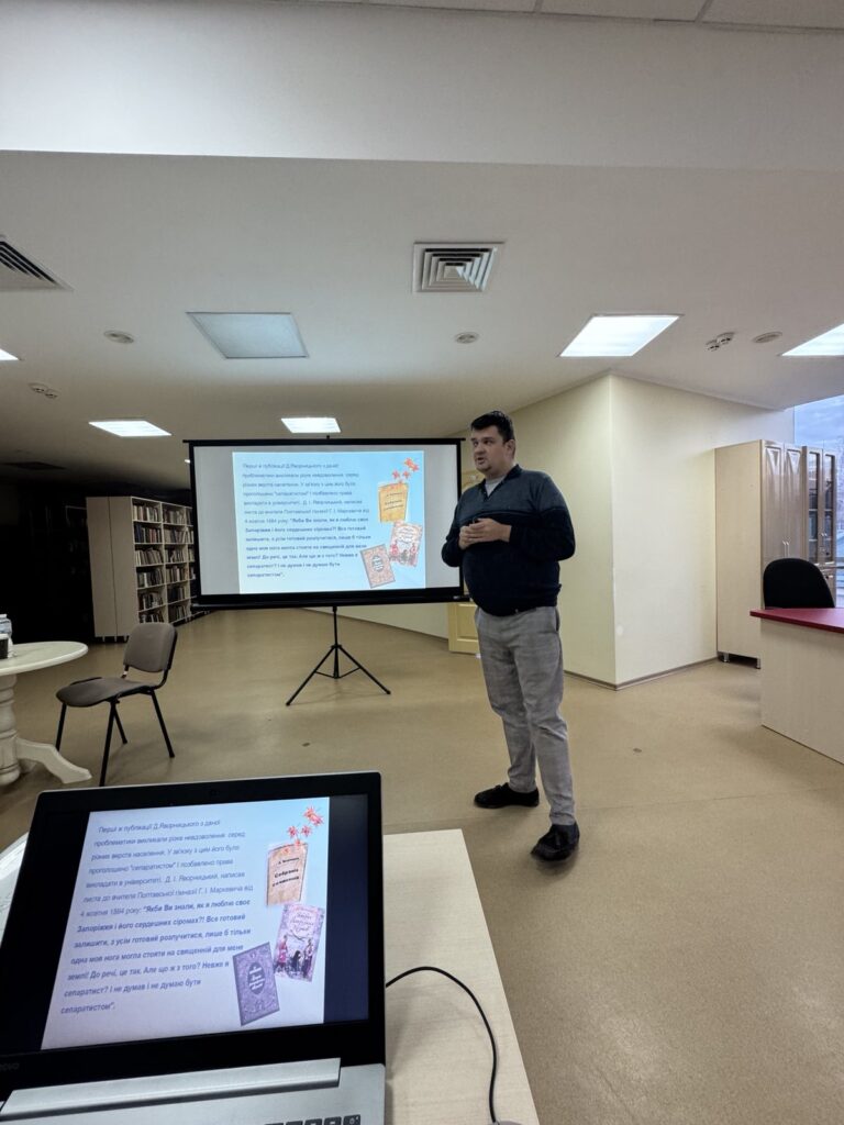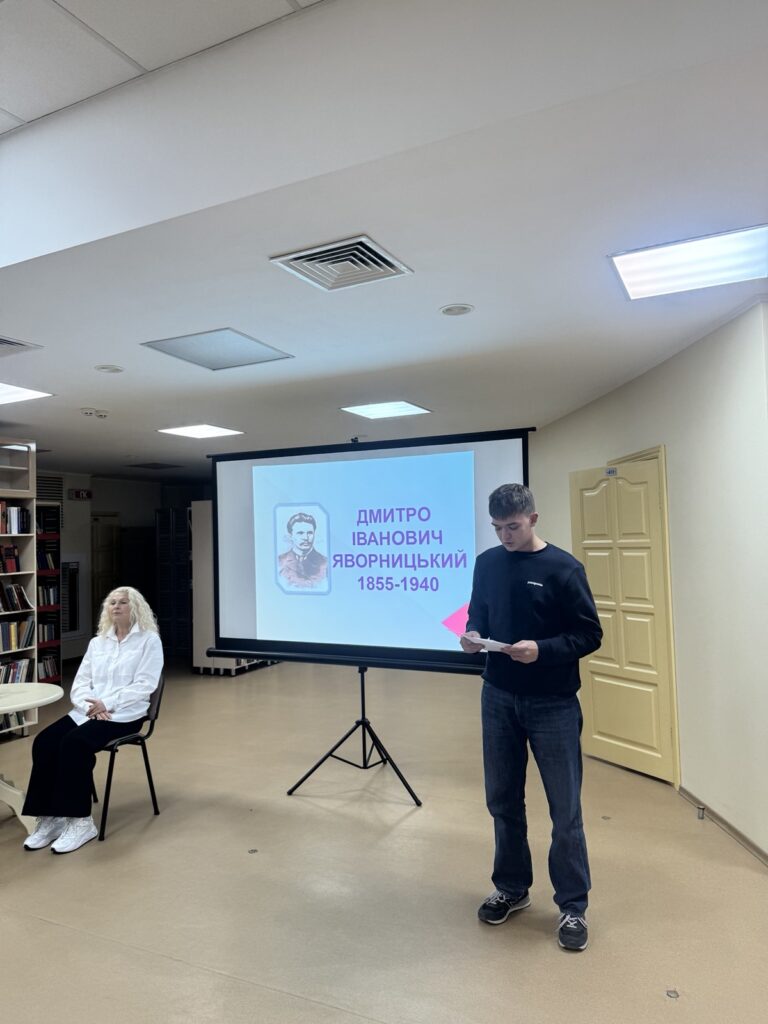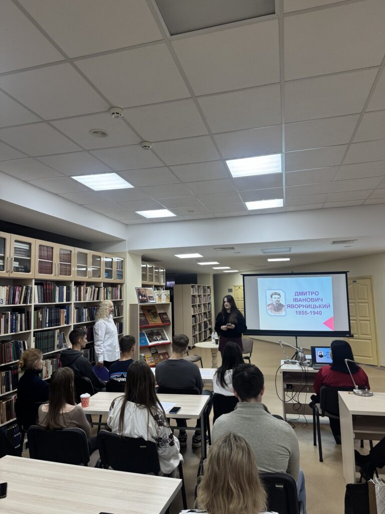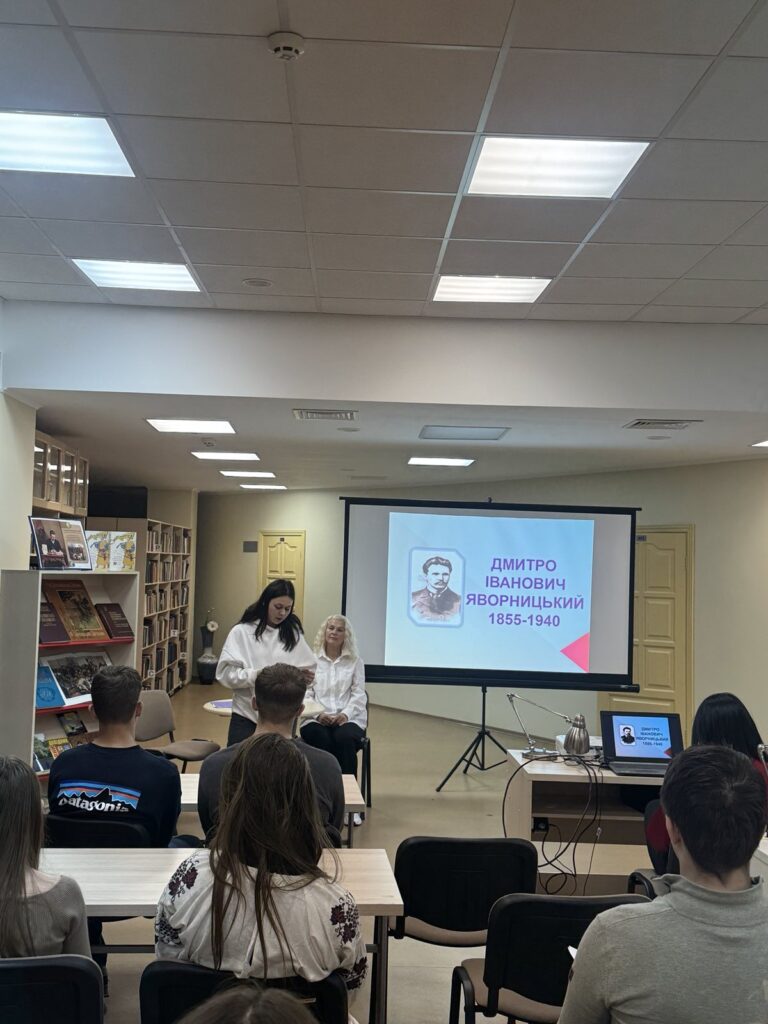 До 170-річчя від дня народження видатного українського історика, археолога, етнографа, музейника та хранителя козацької спадщини Дмитра Івановича Яворницького в Бібліотеці Національного юридичного університету імені Ярослава Мудрого відбулася історико-просвітницька година «Яворницький — українець, який повернув до памʼяті народу історію козацтва».