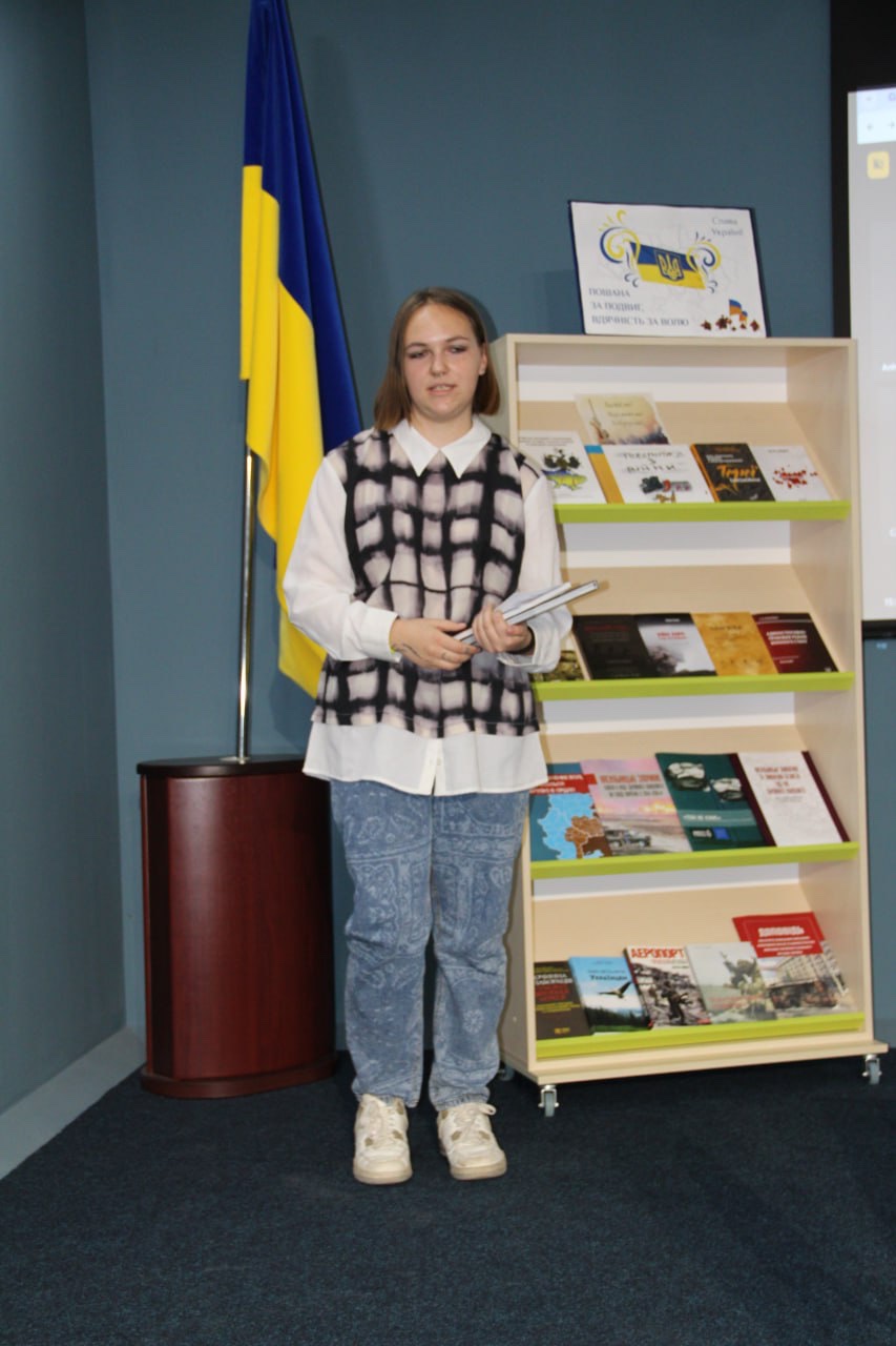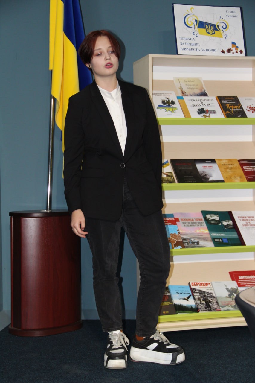 Увагу учасників літературно-мистецького заходу привернули електронна виставка «Російсько-українська війна» та книжкова експозиція “Пошана за подвиг, вдячність за волю” про українське козацтво, славні й незабутні сторінки визвольної боротьби нашого народу проти поневолювачів, добірку творів сучасних українських поетів і письменників, які майстерно підготувала бібліотека.