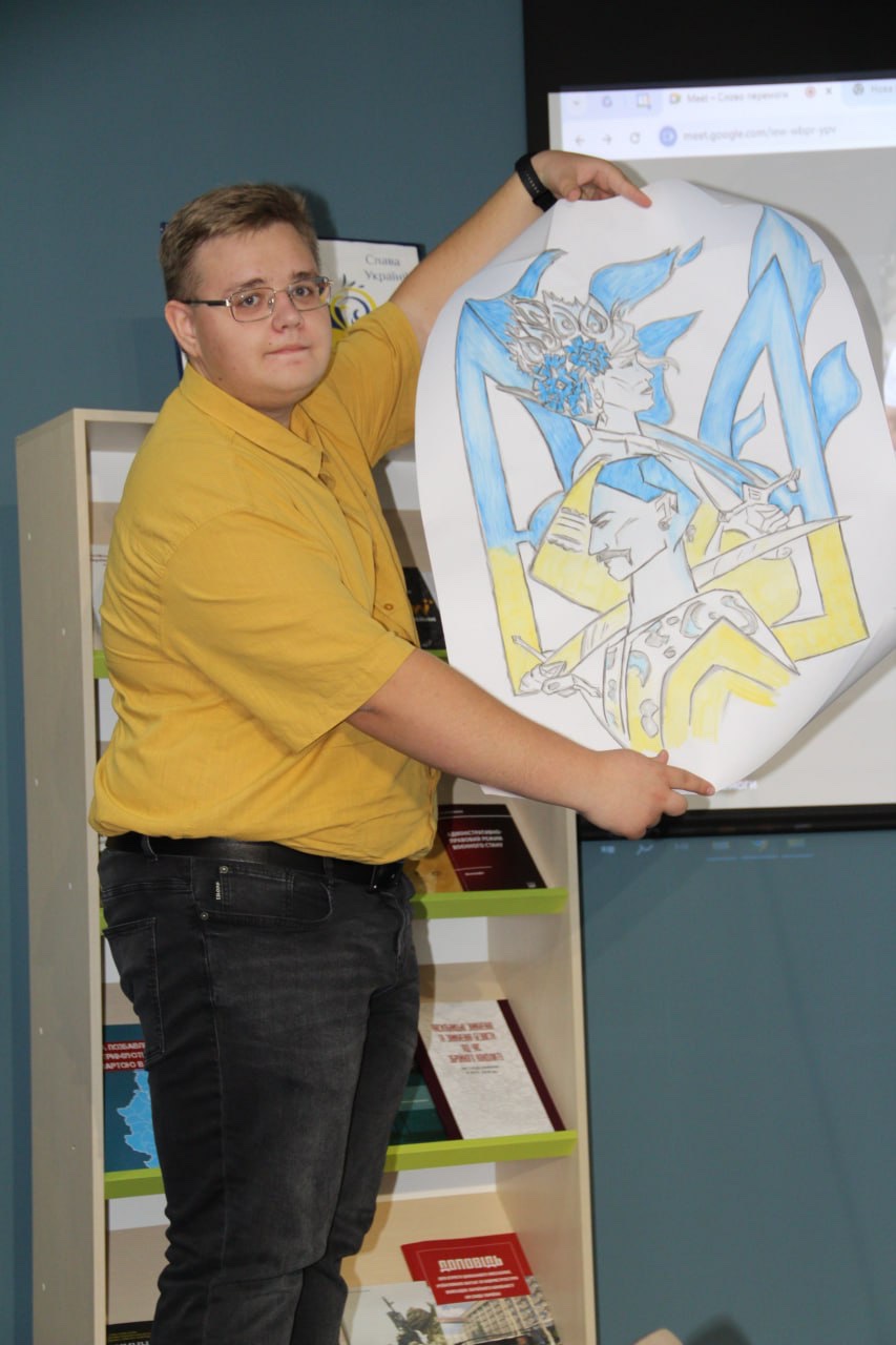 Гліб Хонько не лише представив власний малюнок, приурочений Дню захисників і захисниць України, а й подарував Науковій бібліоеці.