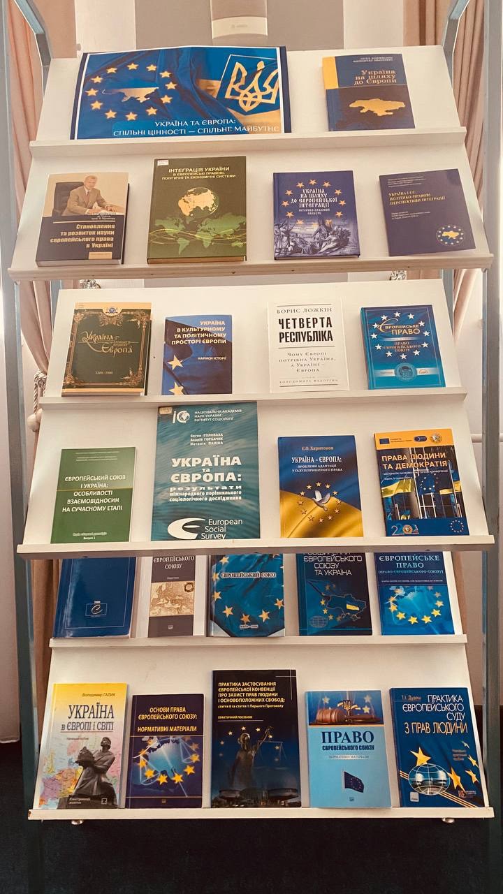 На заході була презентована книжкова виставка «Україна та Європа: спільні цінності – спільне майбутнє», яка висвітлила ключові аспекти європейського вибору України – правовий, політичний, історичний і культурний. Увага присутніх була зосереджена і на формуванні науки європейського права в Україні, процесі гармонізації національного законодавства із правом Європейського Союзу, а також на розвитку взаємин між Україною та європейськими структурами. Окремий змістовий блок експозиції присвячено ролі європейських цінностей у трансформації українського суспільства, місцю України в європейському культурному просторі, духовній і цивілізаційній спорідненості нашої держави з іншими європейськими державами і народами.
