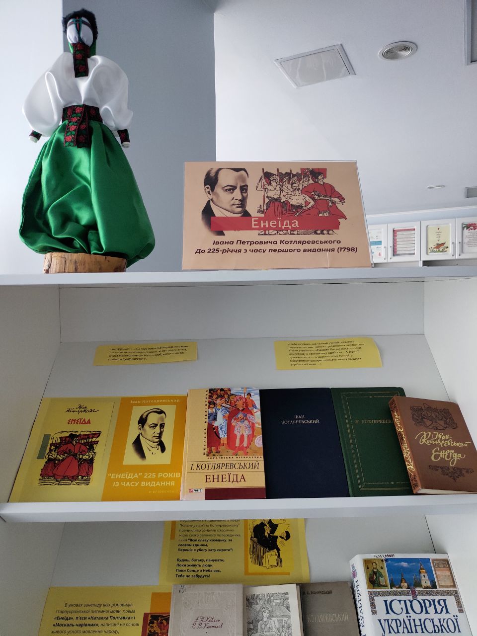 Книжкові експозиції «Спілкуйся серцем — спілкуйся українською» (НБК, 3 пов.; «Енеїда» Івана Петровича Котляревського: до 225-річчя з часу першого видання (1798)” (НБК, 6 пов.)