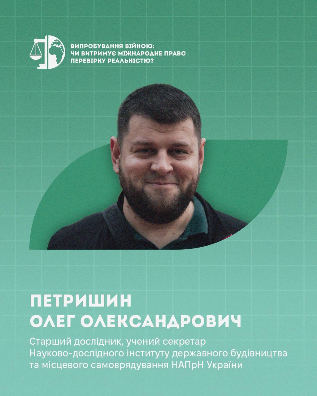 Петришин Олег Олександрович – старший дослідник, учений секретар Науково-дослідного інституту державного будівництва та місцевого самоврядування НАПрН України.