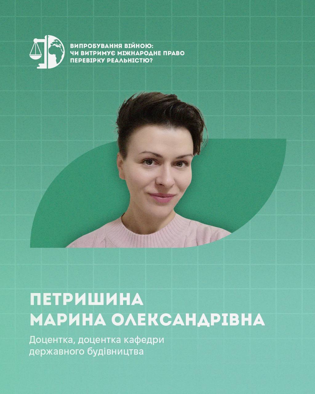 Петришина Марина Олександрівна – доцентка кафедри державного будівництва НЮУ ім. Ярослава Мудрого