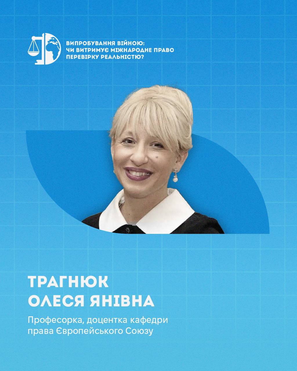 Трагнюк Олеся Янівна – доцентка кафедри права Європейського Союзу НЮУ ім. Ярослава Мудрого