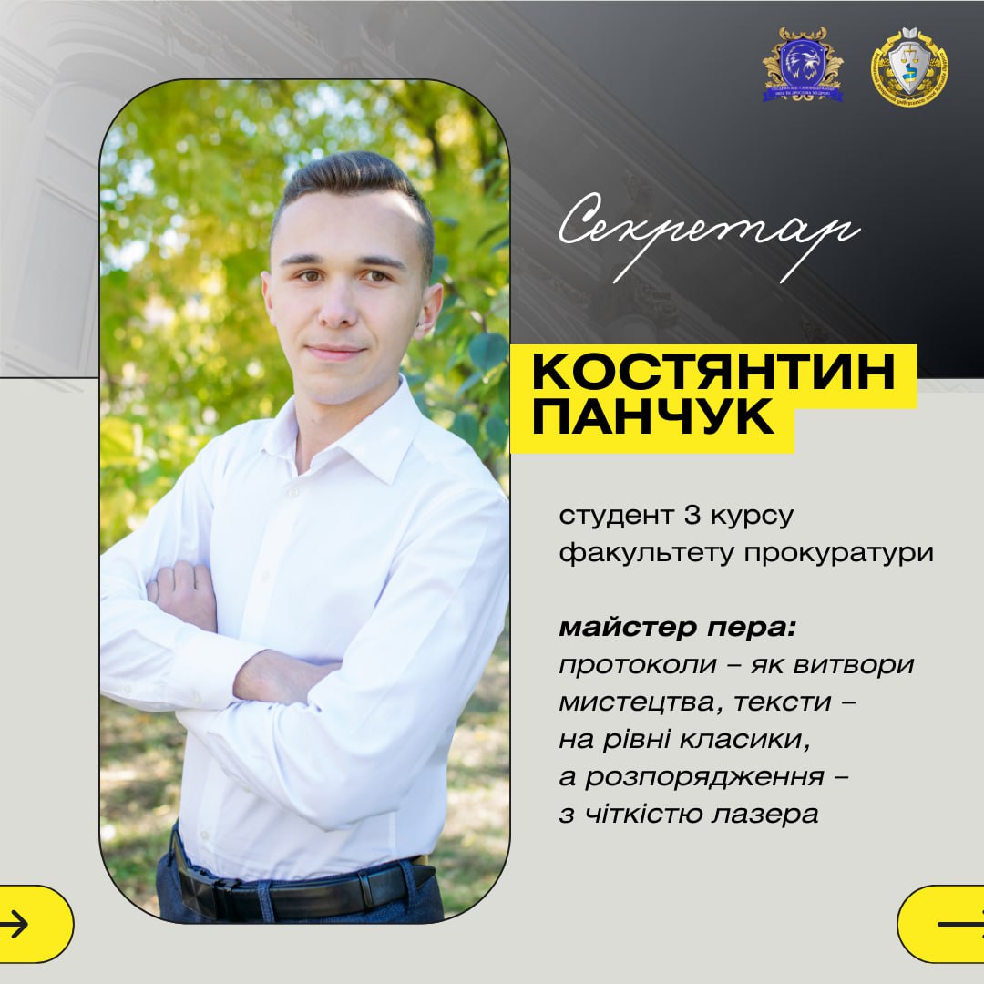 Секретар – Костянтин Панчук, студент 3 курсу факультету прокуратури