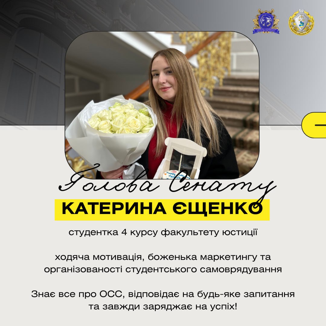 Голова Сенату – Катерина Єщенко, студентка 4 курсу факультету юстиції