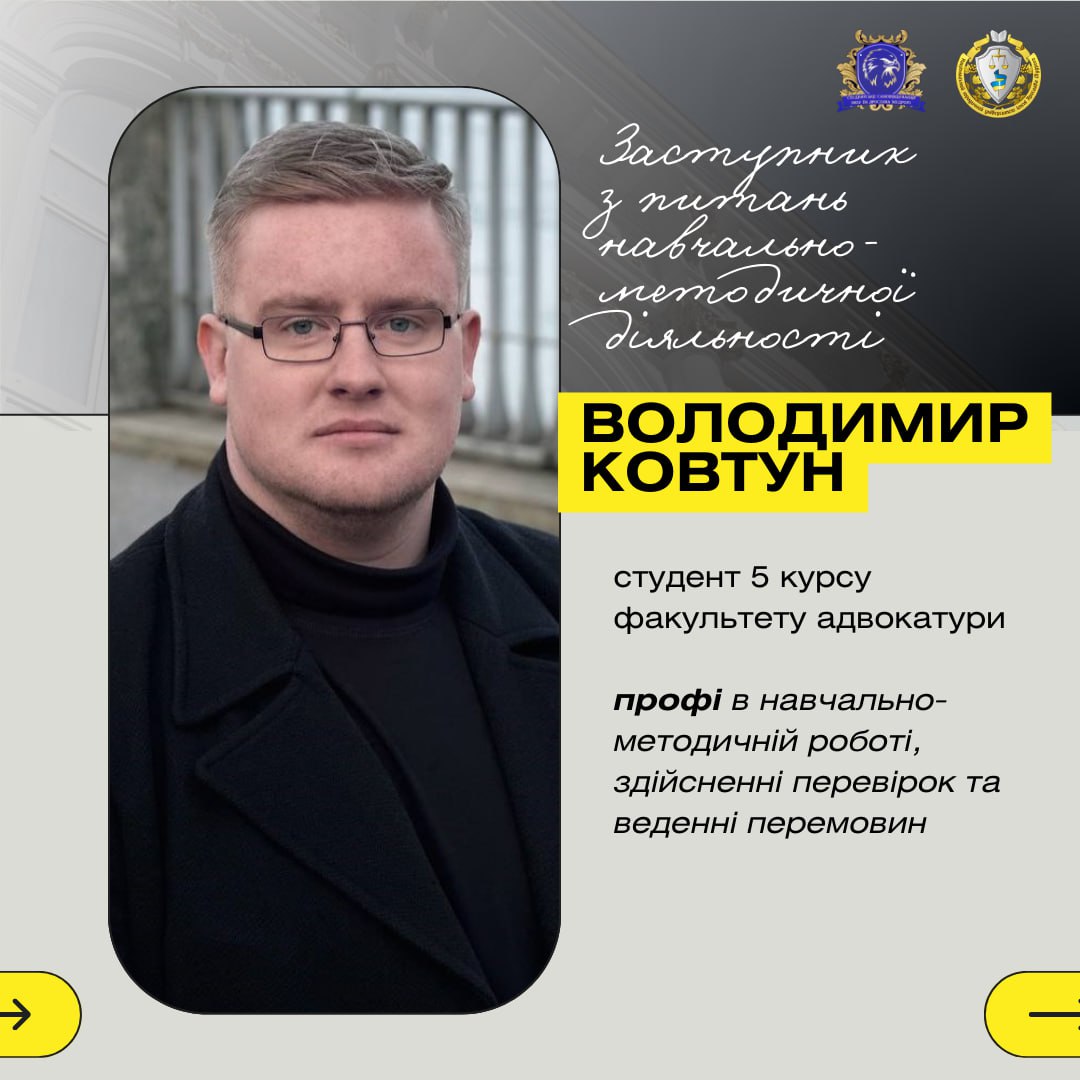 З питань навчально-методичної роботи – Володимир Ковтун, студент 1 курсу магістратури факультету адвокатури