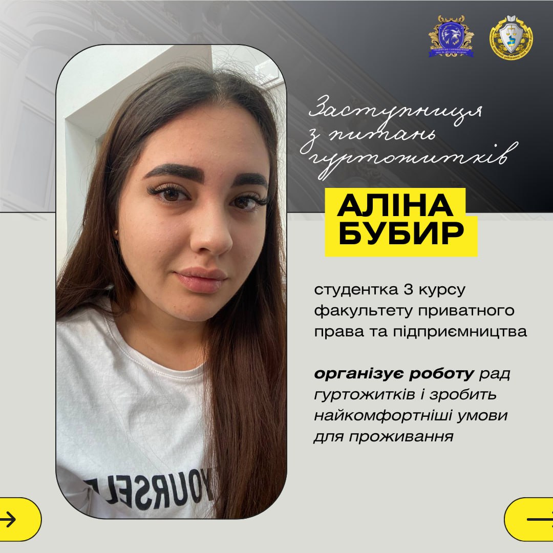 З питань гуртожитків – Аліна Бубир, студентка 3 курсу факультету приватного права та підприємництва