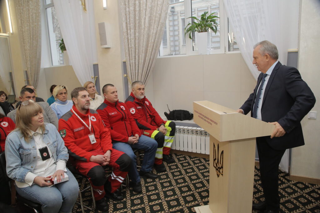 Ректор висловив щиру подяку представникам Харківської обласної організації Товариства Червоного Хреста України за ефективну співпрацю у реалізації спільних гуманітарних ініціатив в умовах воєнного стану та відзначив Костянтина Башкірова Почесною грамотою Університету.