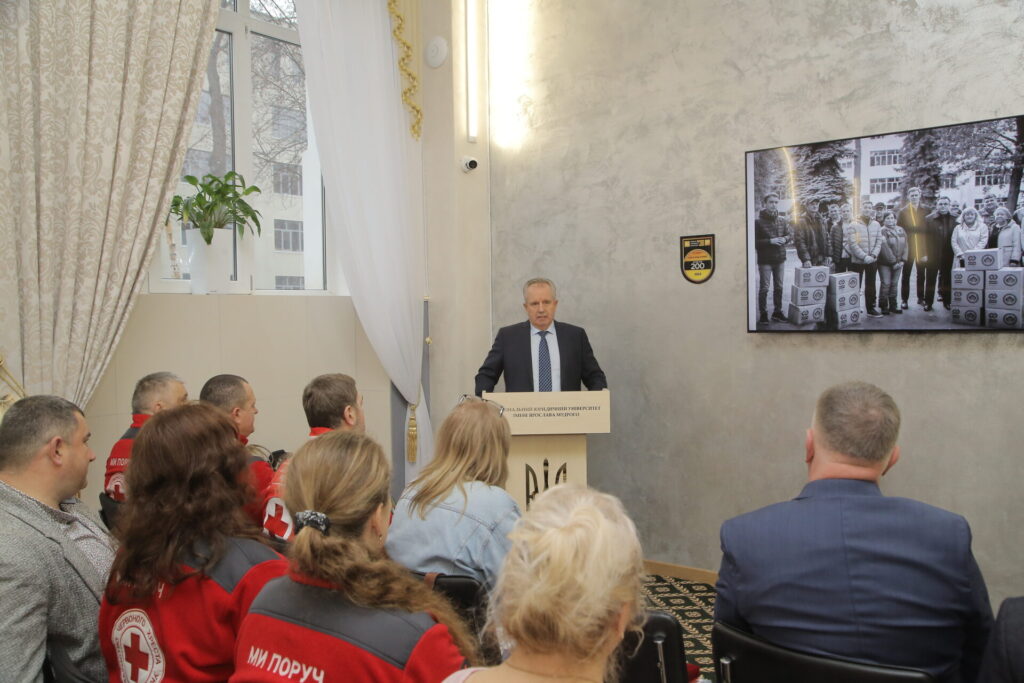 Ректор Університету Анатолій Гетьман презентував результати діяльності Гуманітарного штабу, зосередженої на підтримці працівників, студентів та їхніх родин, жителів міста й соціальних установ. Також поінформував безперервне функціонування пункту незламності в одному з гуртожитків Університету та про системну підтримку, яку Університет надає Збройним Силам України.