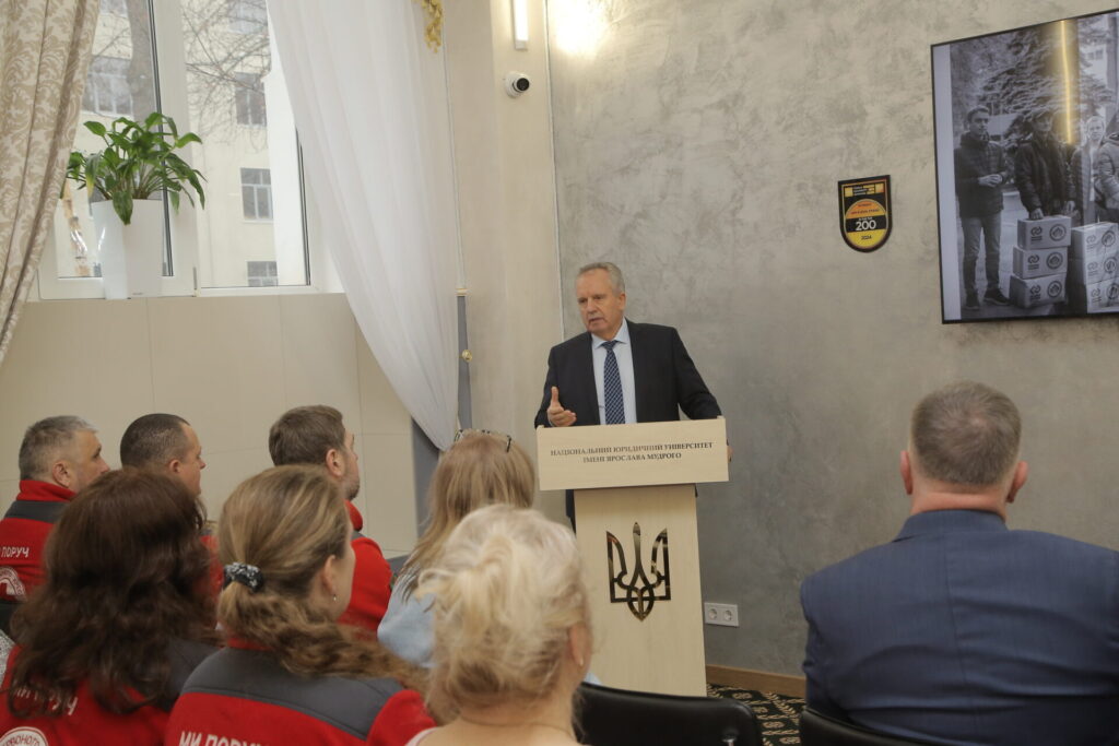 З нагоди Міжнародного дня волонтера 10 грудня 2025 року в Національному юридичному університеті імені Ярослава Мудрого відбулася зустріч університетської спільноти з представниками Харківської обласної організації Товариства Червоного Хреста України на чолі з головою Костянтином Башкіровим. У заході взяли участь працівники та студенти, які активно долучаються до діяльності Гуманітарного штабу Університету.