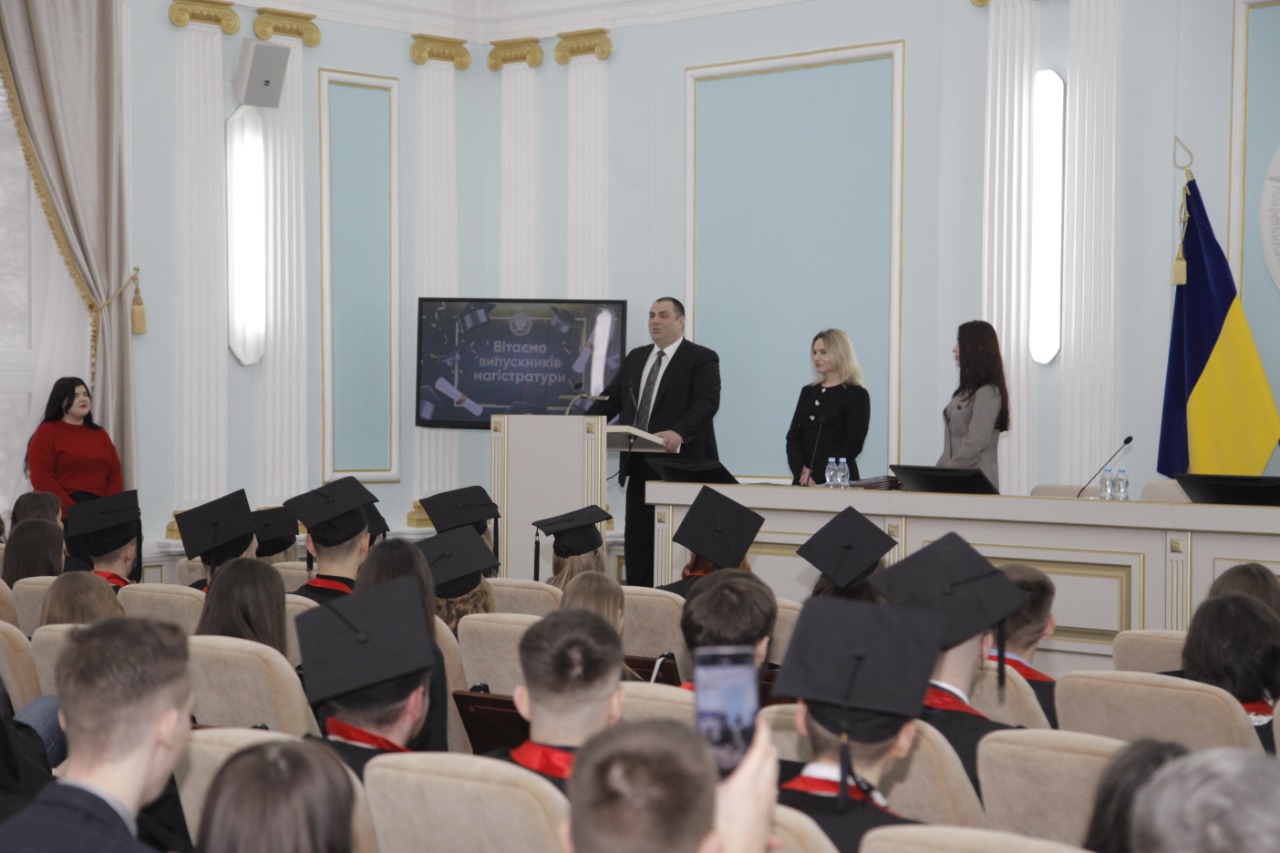 Я впевнений, саме ви станете поколінням, яке не лише поверне мир в Україну, а й зробить його міцним, довготривалим, справедливим, побудованим на демократії та людяності. Адже впродовж п’яти років я мав щастя спостерігати, як ви зростали, мужніли, сумлінно здобували знання, як із галасливих першокурсників перетворювалися на закоханих в юриспруденцію фахівців, затятих дослідників, відданих патріотів.