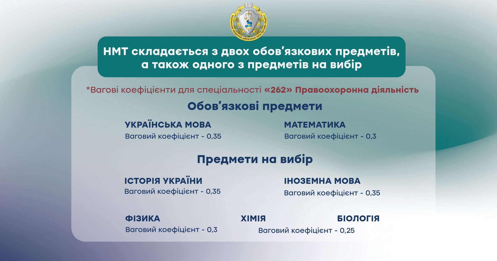 скласти Національний мультипредметний тест 2023. 2 обов‘язкових предметів (українська мова + математика), і 1 на вибір (історія України/іноземна мова/фізика/хімія/біологія).