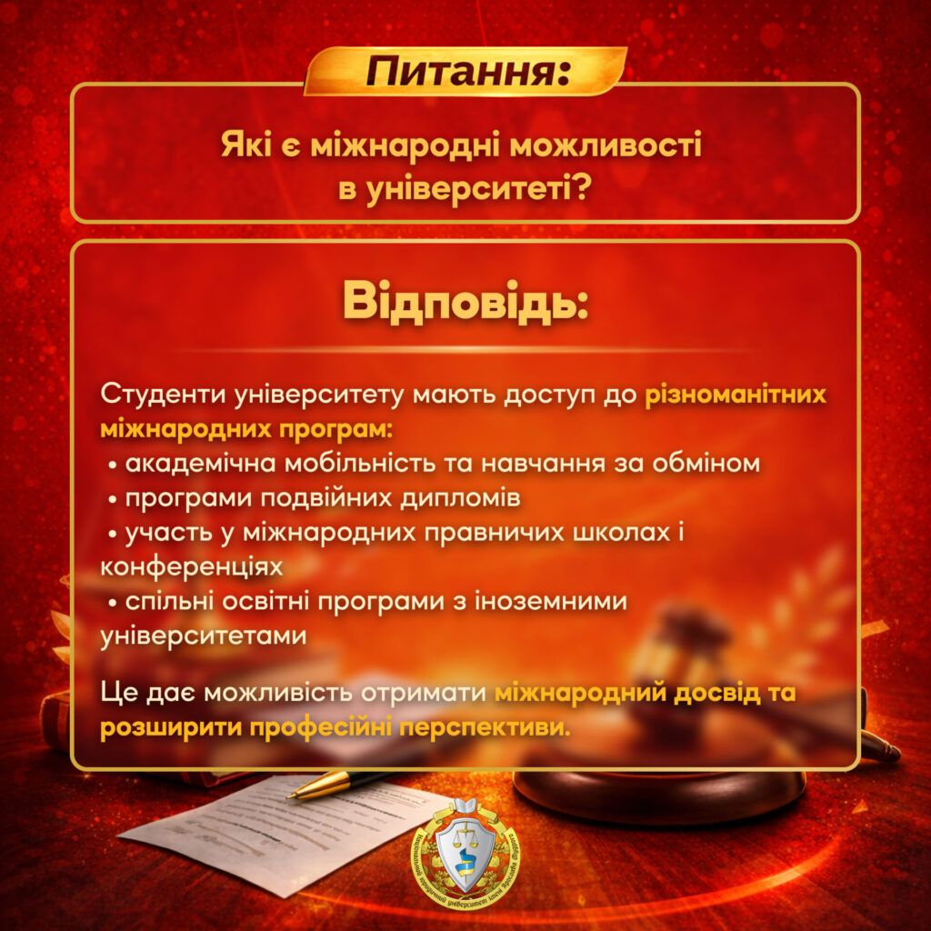 Ми зібрали та систематизували найпоширеніші запитання від вступників, щоб надати вам чіткі й вичерпні відповіді щодо вступу, особливостей навчання, можливостей і перспектив, які відкриває Університет.