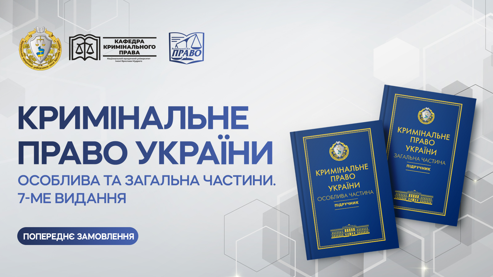 🔷 Колективом науковців кафедр кримінального права та кримінально-правової політики Національного юридичного університету імені Ярослава Мудрого спільно з науковцями кафедри кримінального права та кримінально-правових дисциплін Полтавського юридичного інституту підготовлено 7-ме видання підручників «Кримінальне право України. Загальна частина та «Кримінальне право України. Особлива частина». 🔷 Видання підготовлено за загальною редакцією професорів: Юрія Бауліна, Вячеслава Борисова, Володимира Тютюгіна,…
