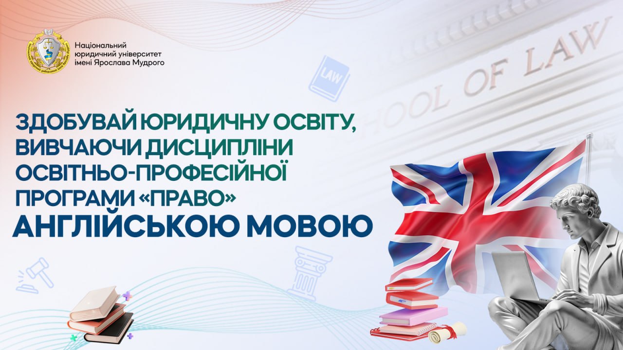 З метою розвитку іншомовних компетентностей студентів освітньо-професійної програми «Право» (спеціальність D8 «Право», бакалаврський рівень) Національний юридичний університет імені Ярослава Мудрого пропонує можливість навчання англійською мовою. Для студентів 1 курсу денної форми навчання 2026 року вступу, які володіють англійською мовою на достатньому рівні та бажають нею навчатися, передбачено викладання дисциплін навчального плану англійською мовою. Програма діє…