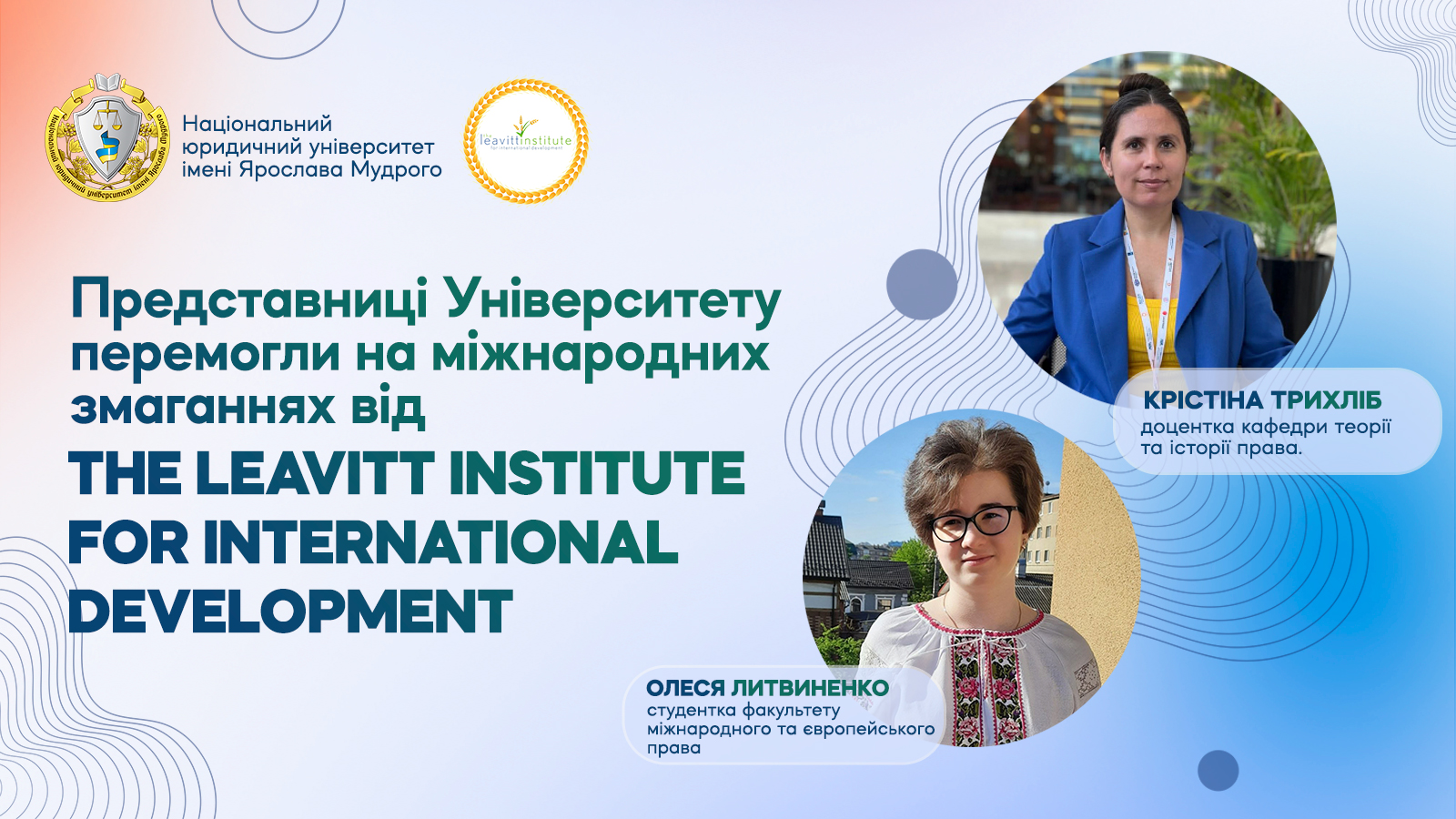 З великою радістю повідомляємо про визначне досягнення команди нашого Університету. 22 квітня 2026 р. представниці Національного юридичного університету імені Ярослава Мудрого – доцентка кафедри теорії та історії права Крістіна Трихліб і студентка 1-го курсу факультету міжнародного та європейського права (англомовної програми навчання) Олеся Литвиненко – здобули перемогу у фіналі престижних національних змагань із симуляції судового…